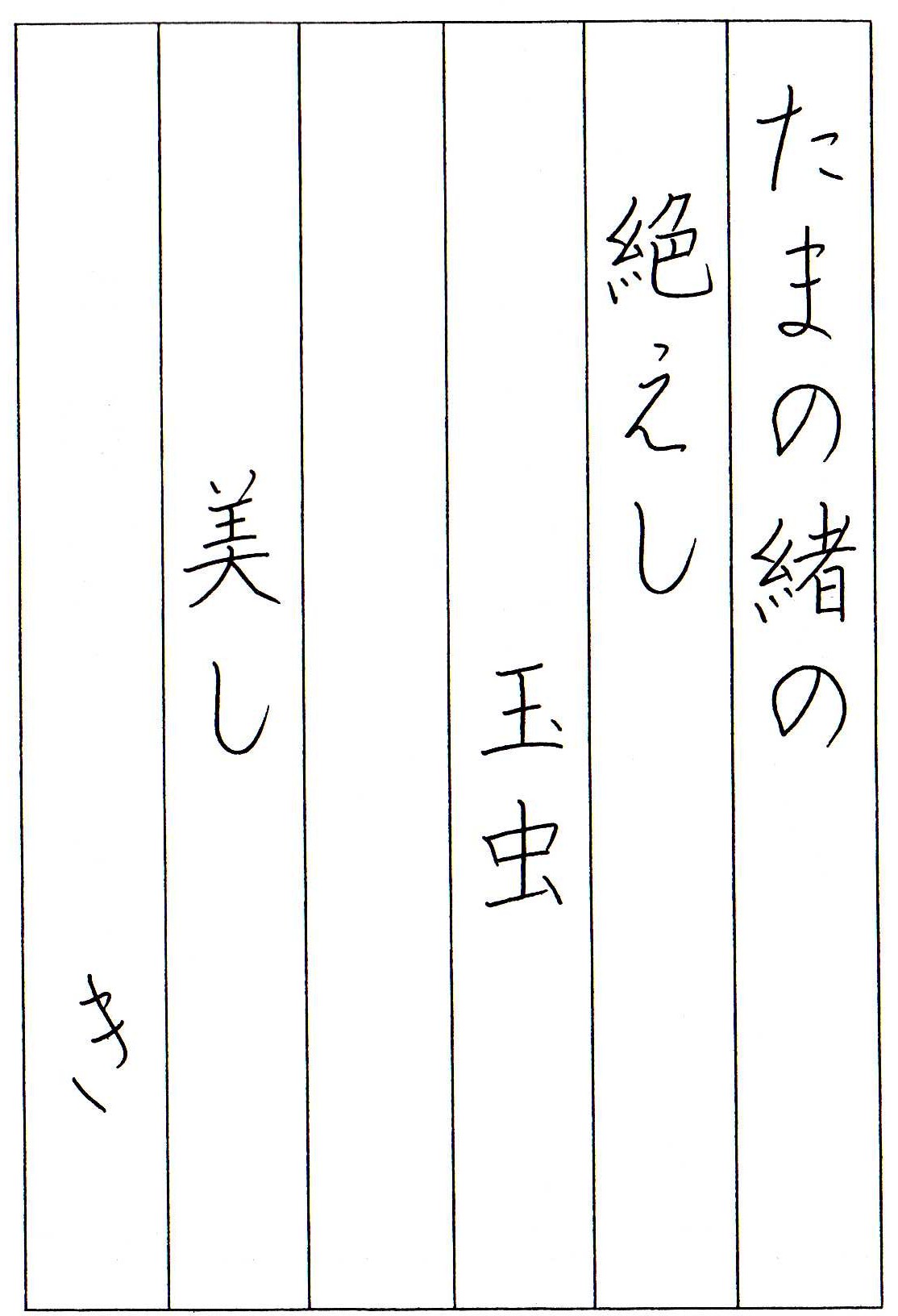 お手紙 ありがとうございました! また 月例作品の提出にはご苦労も多いかと思いますが、どうぞ 楽しみに書いて下さい。