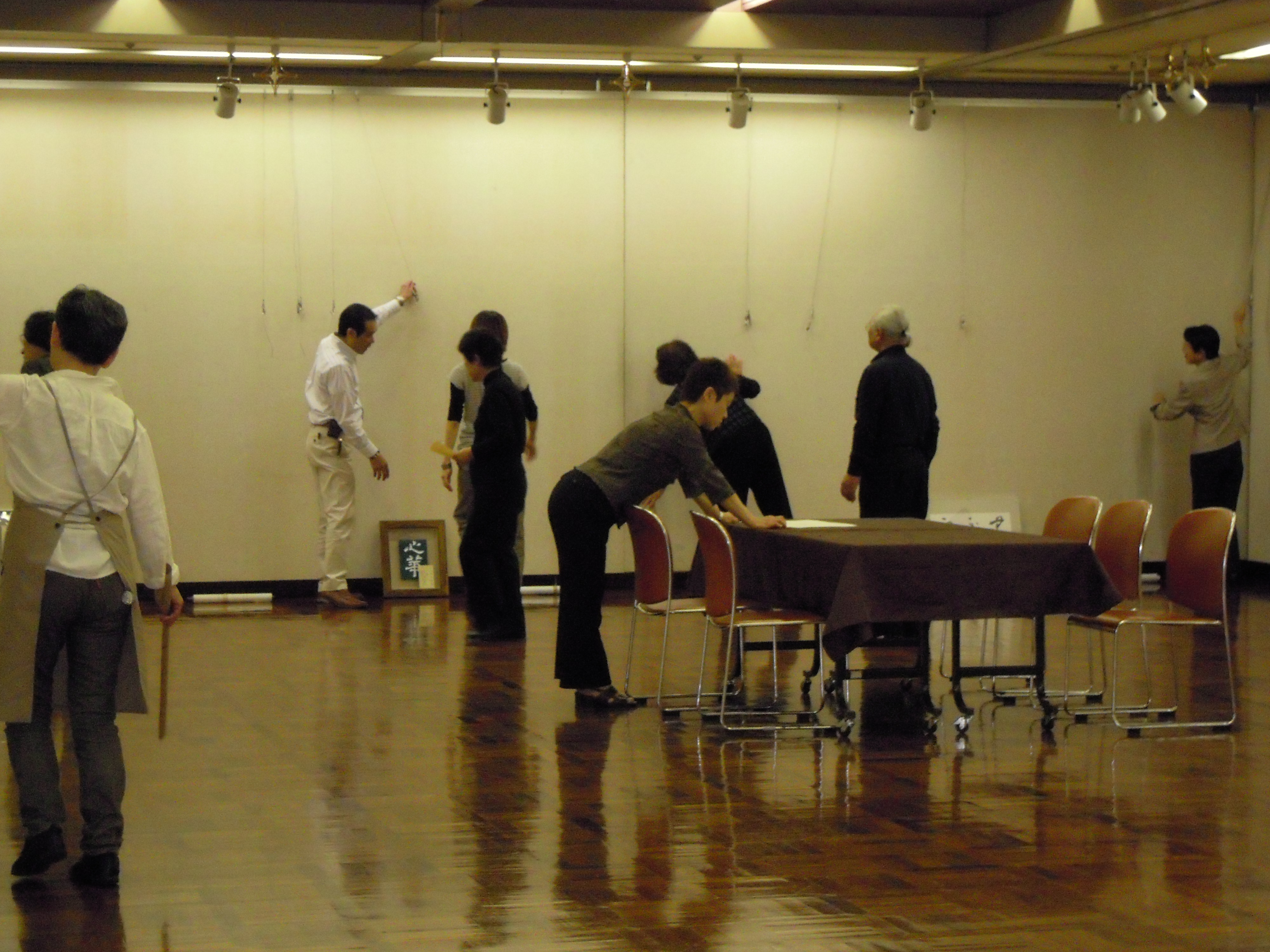 4月29日~5月1日まで 大田区区民プラザにおいて 関連団体「九羊書会」の「九羊展」が開催されます。会長をはじめ諸先生方の協力を頂き 作品の飾り付けを致しました。