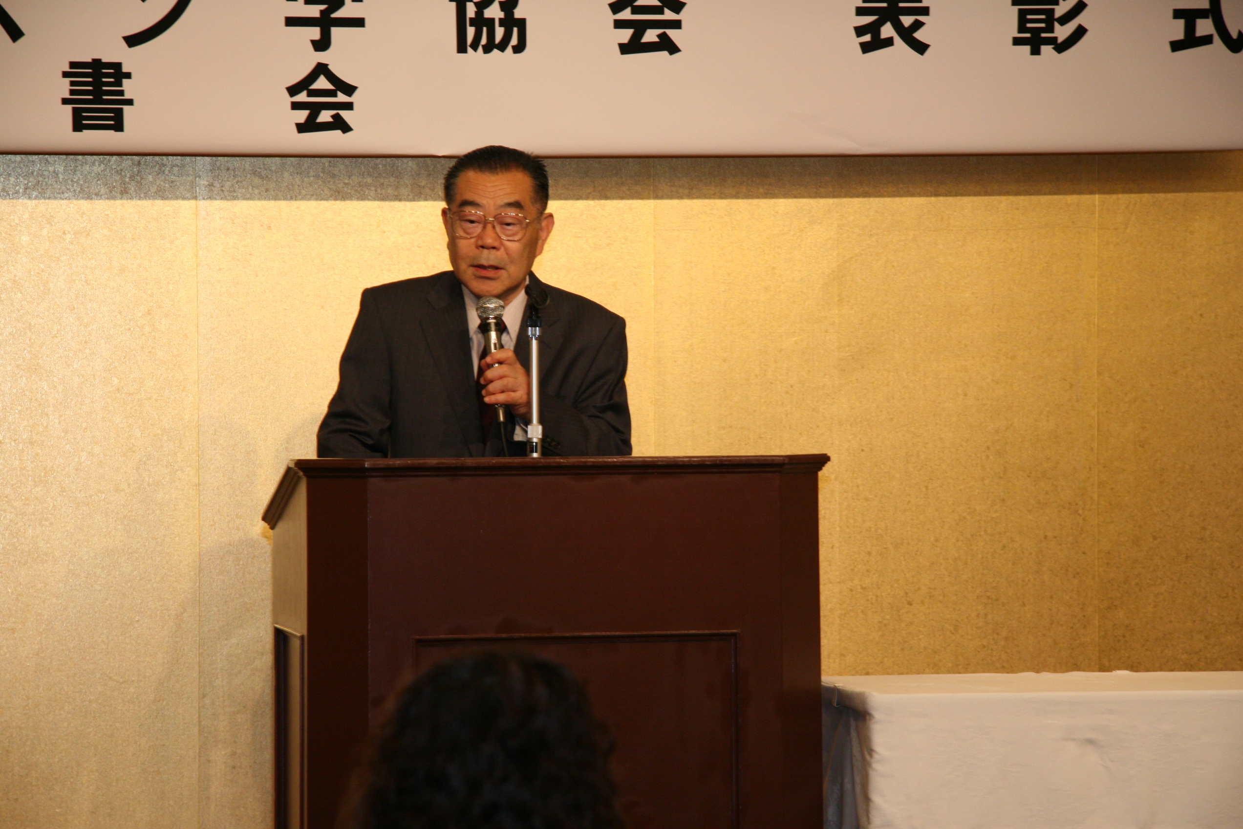 各種 昇位試験の免状授与に続き ペン字年間優秀賞はじめ精励賞・功労賞の他 今年度新たに設定された「書鏡ペン字協会特別賞」が 永年に渡る当協会への貢献に対し「井上学院」に授与されました。