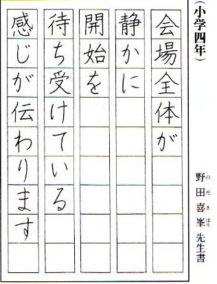 今月は 認定課題(級位)の行書・鑑賞作品参考手本・小学四年のお手本を紹介します。