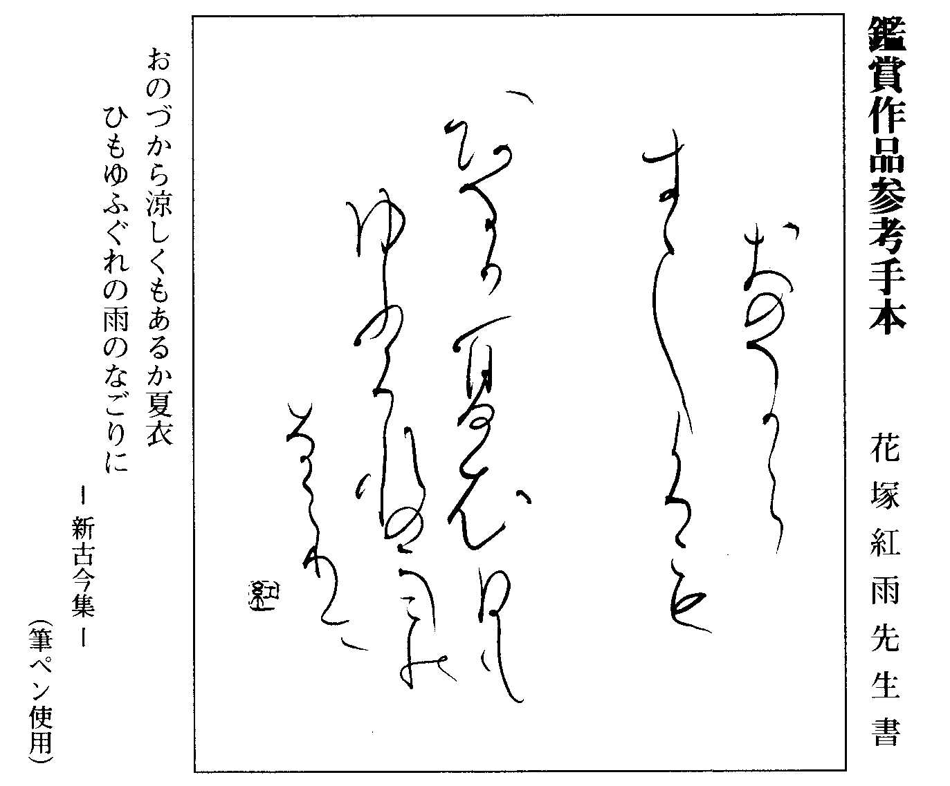 <鑑賞作品>客員理事 花塚 紅雨先生の仮名です。「おのづから・・・」です。濁点はうちません。