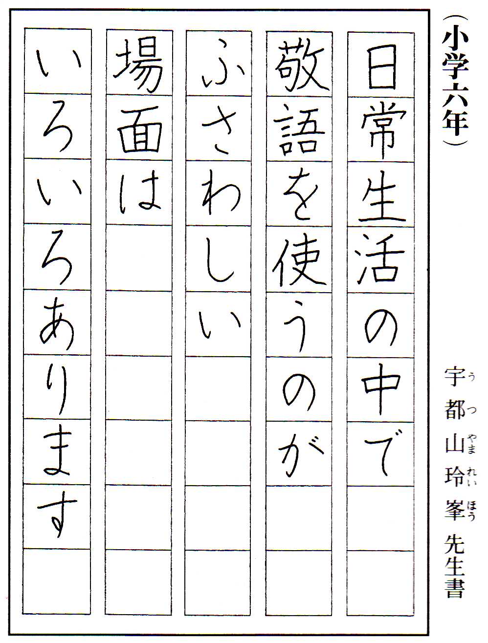 今月は、鑑賞作品・便箋課題・小学6年のお手本を紹介します。