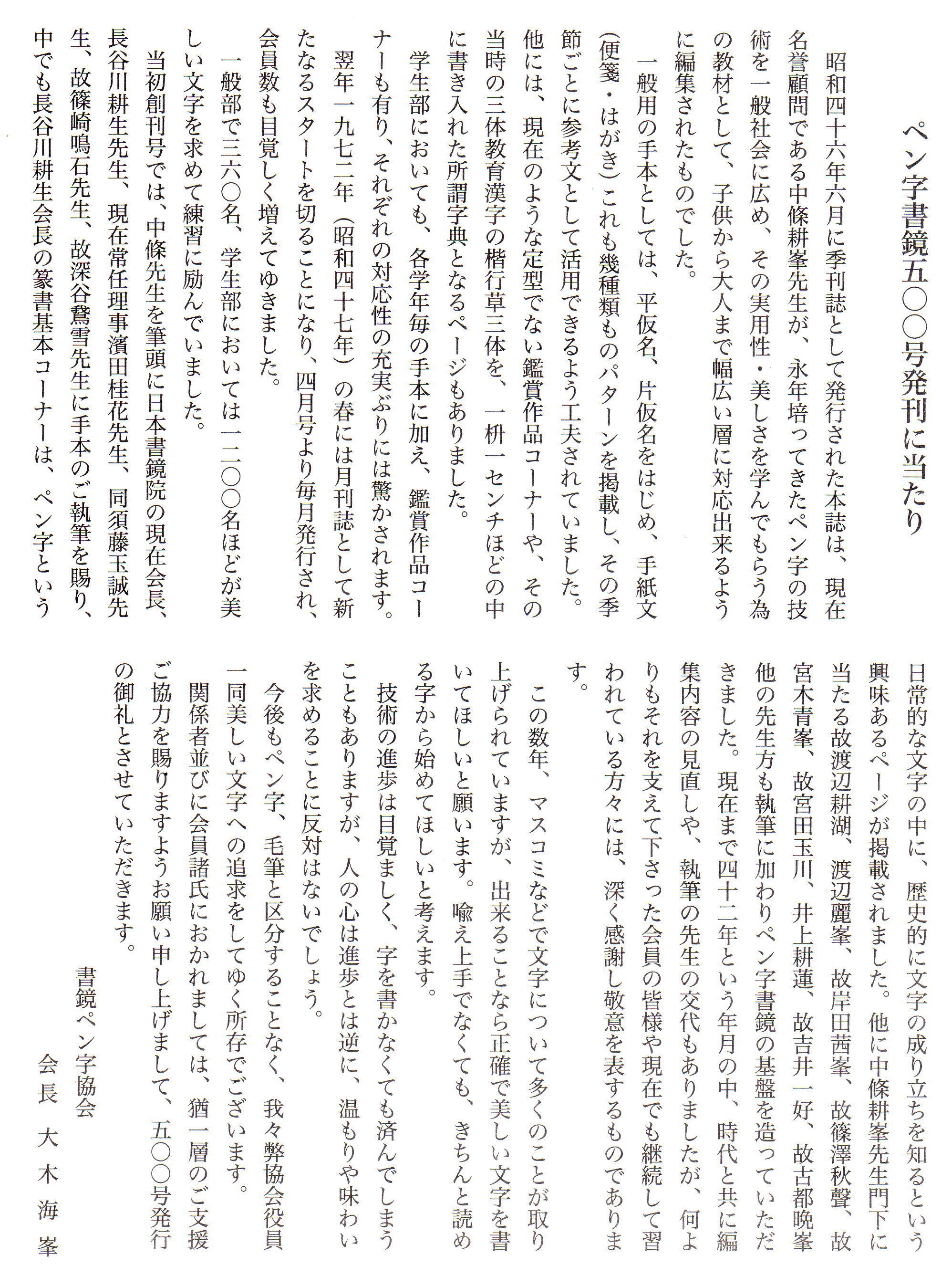 >> ペン字書鏡500号発刊