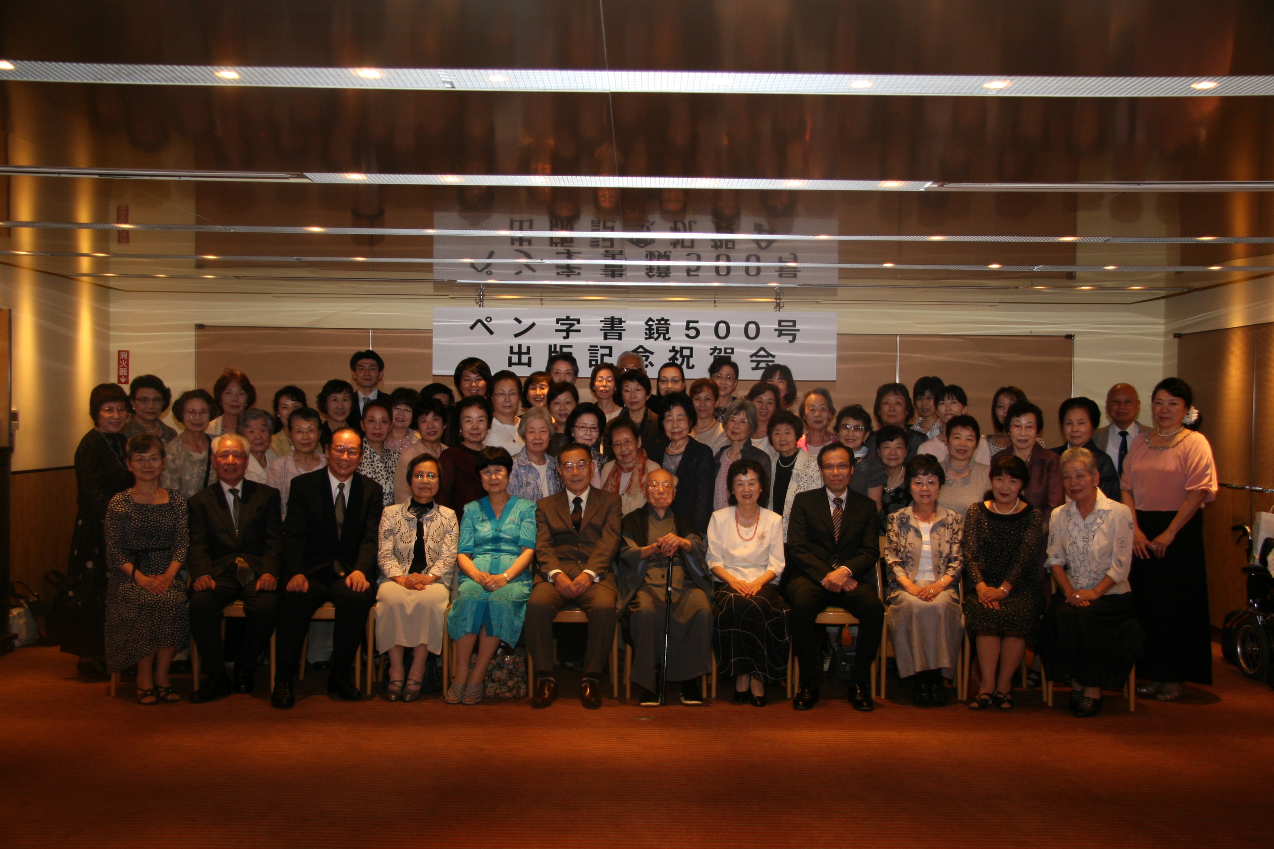 7月28日、「500号発刊記念祝賀会」が執り行われました。日本書鏡院より 長谷川 耕生会長ご夫妻、常任理事 濱田 桂花先生、同須藤 玉誠先生のご臨席を賜り、ペン字協会より中條 耕峯名誉顧問、花塚 紅雨客員理事はじめ 大木会長以下多数の会員出席の中、楽しい時を過ごしました。