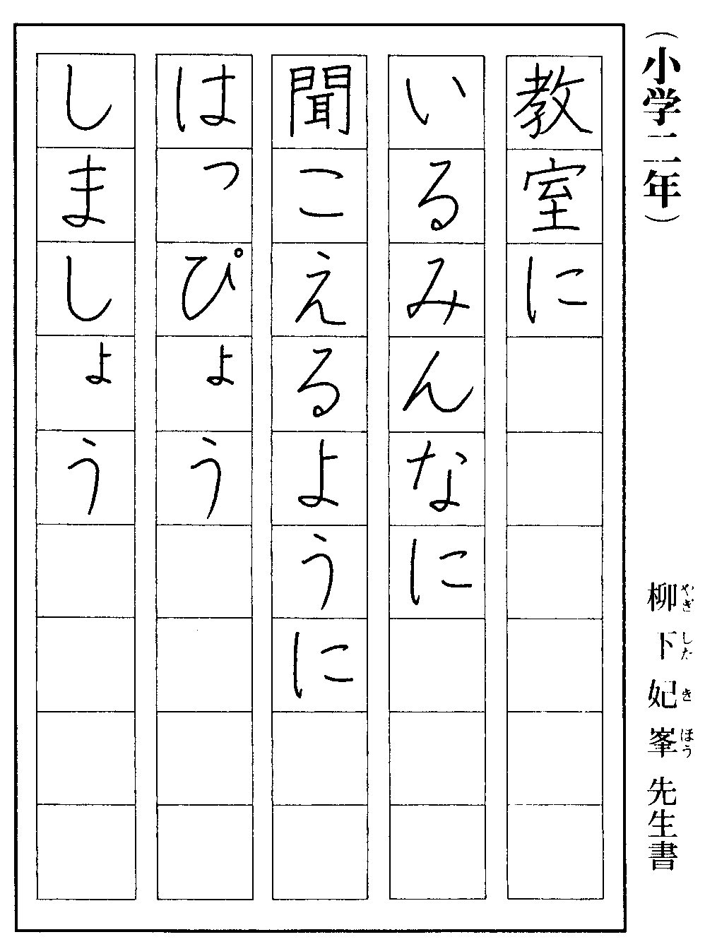 今月は、一般認定課題段位・横書き・小学2年のお手本のご紹介です。