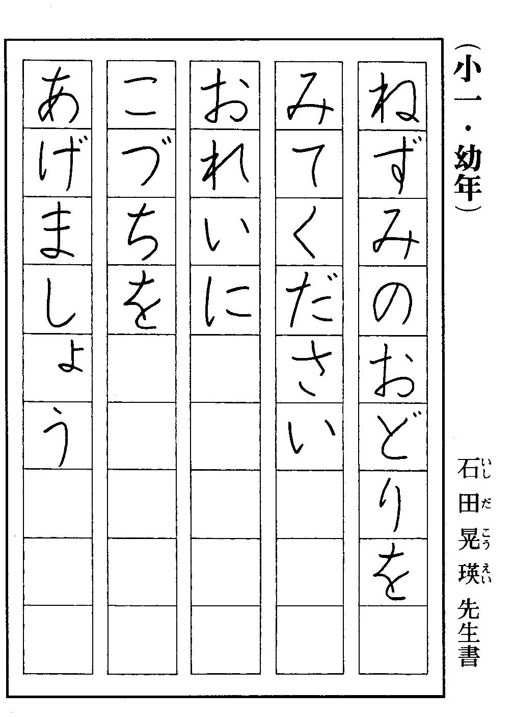 今月は、「基本講座 (1)」・「認定課題一級以下 楷書」・「小学1年」の手本のご紹介です。