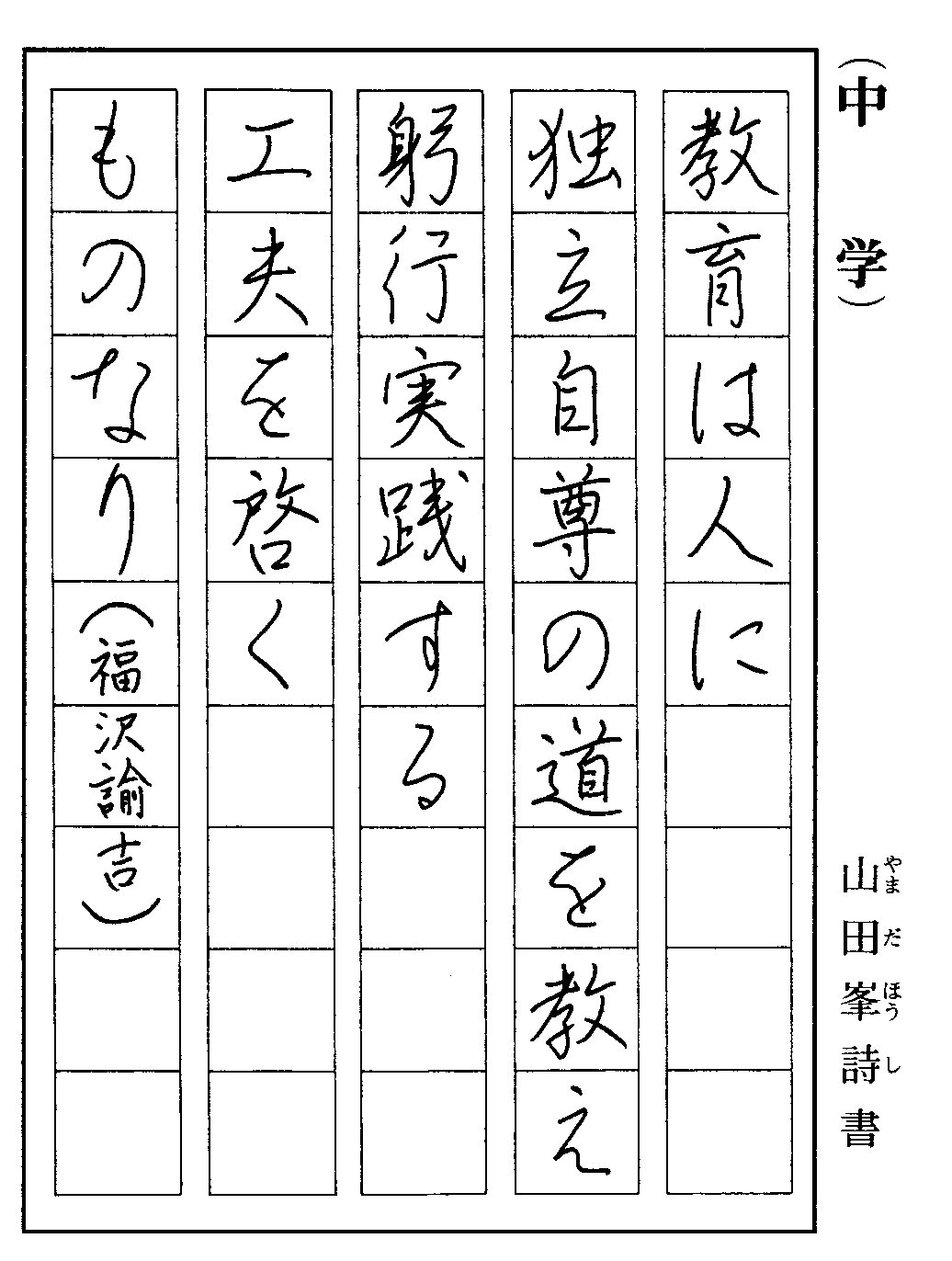 今月は、葉書・鑑賞作品・中学課題の手本の紹介です。