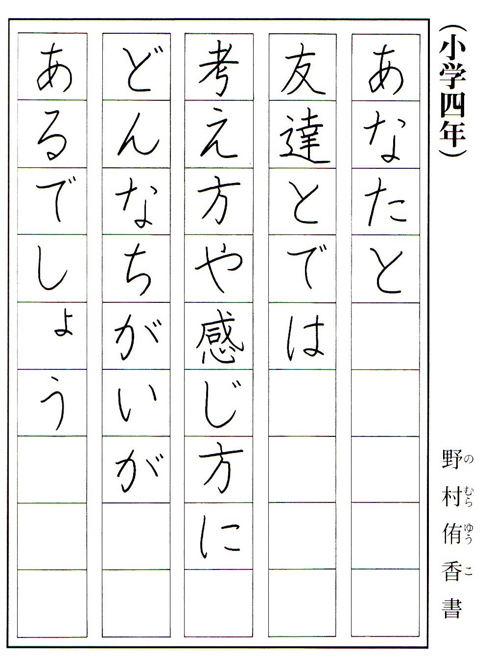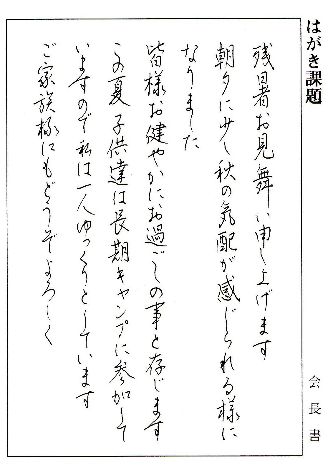 今月は、一般認定一級以下・はがき・小学4年の手本の紹介です。