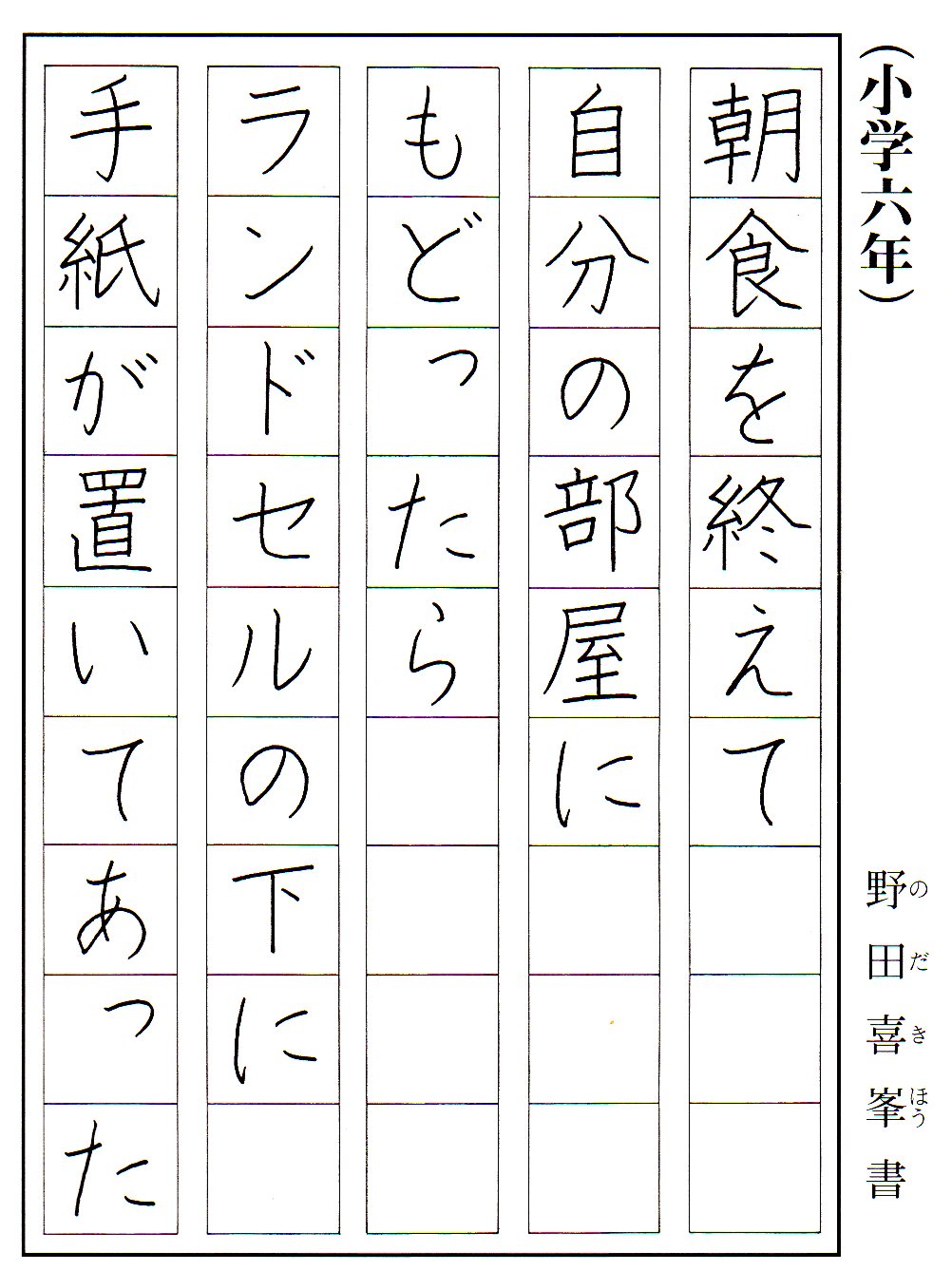 文字の形をよく見て、周りの空き方に目を向けましょう。縦長の字、四角い字、それぞれ見極めてください。