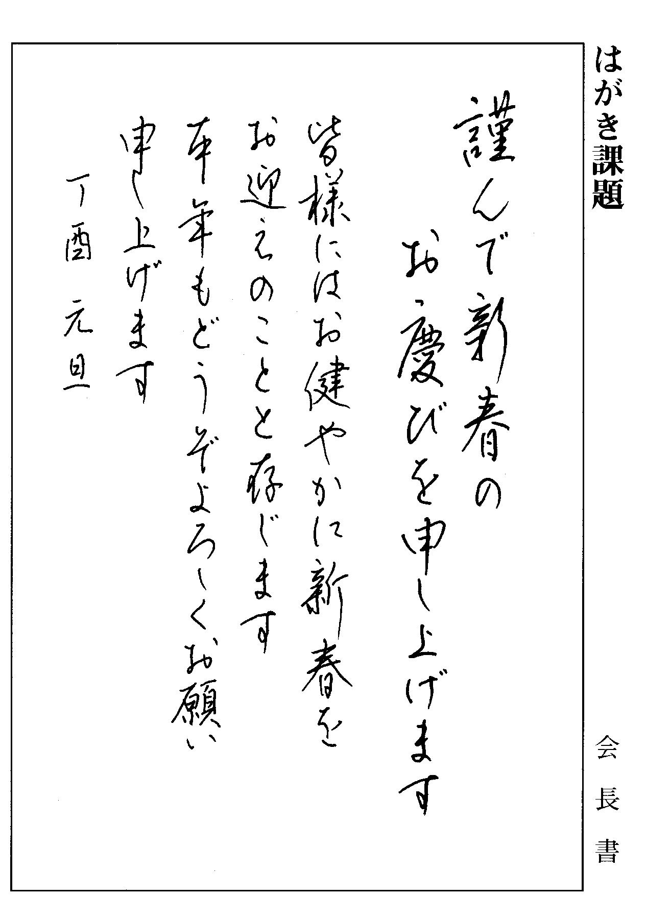 <はがき課題>タイムリーな手本ですが、ハードルが高いかもしれません。部分的に参考にする事もできますね。