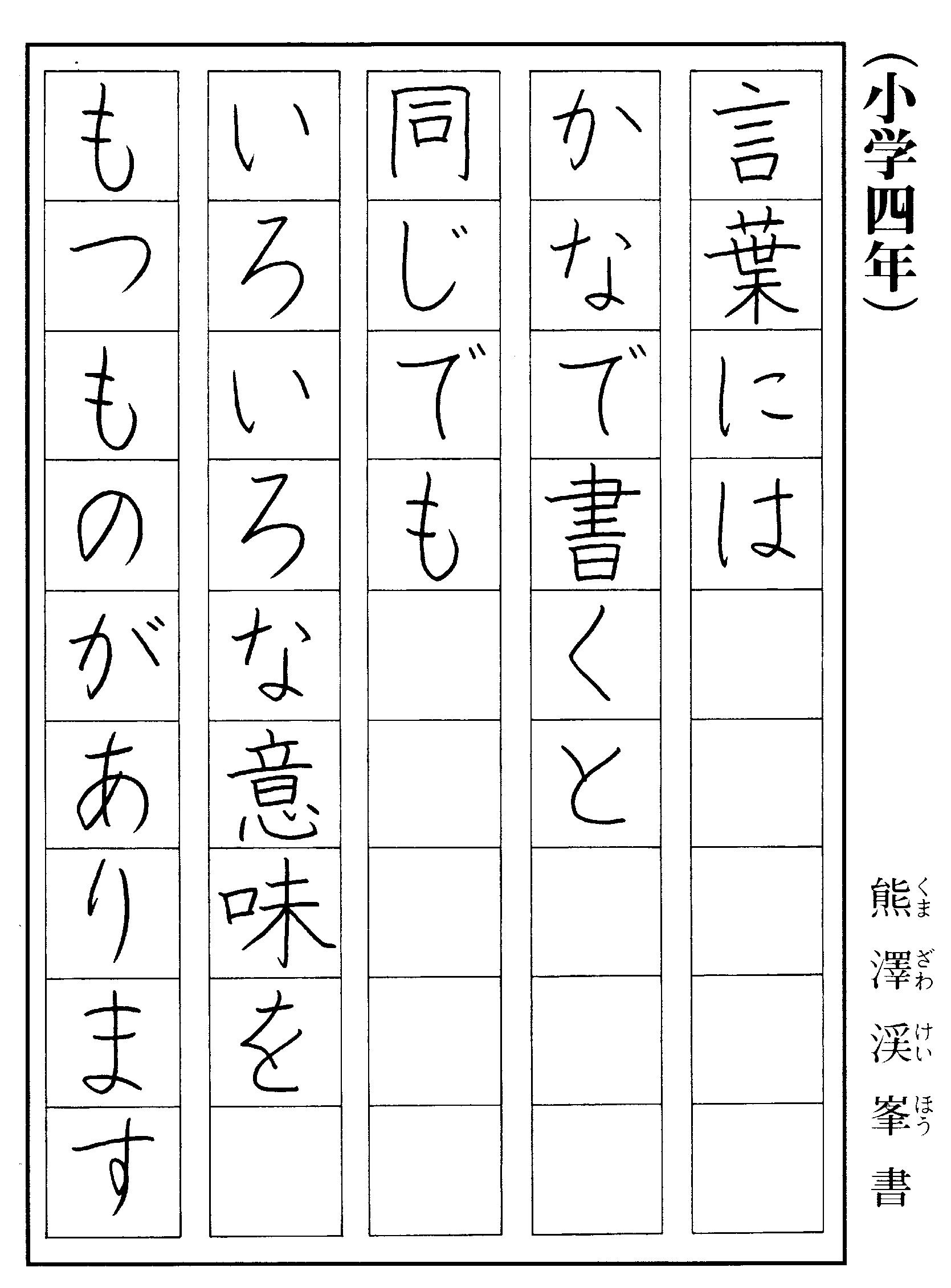 今月は、認定1級以下(行書)・はがき・小学4年のご紹介です。