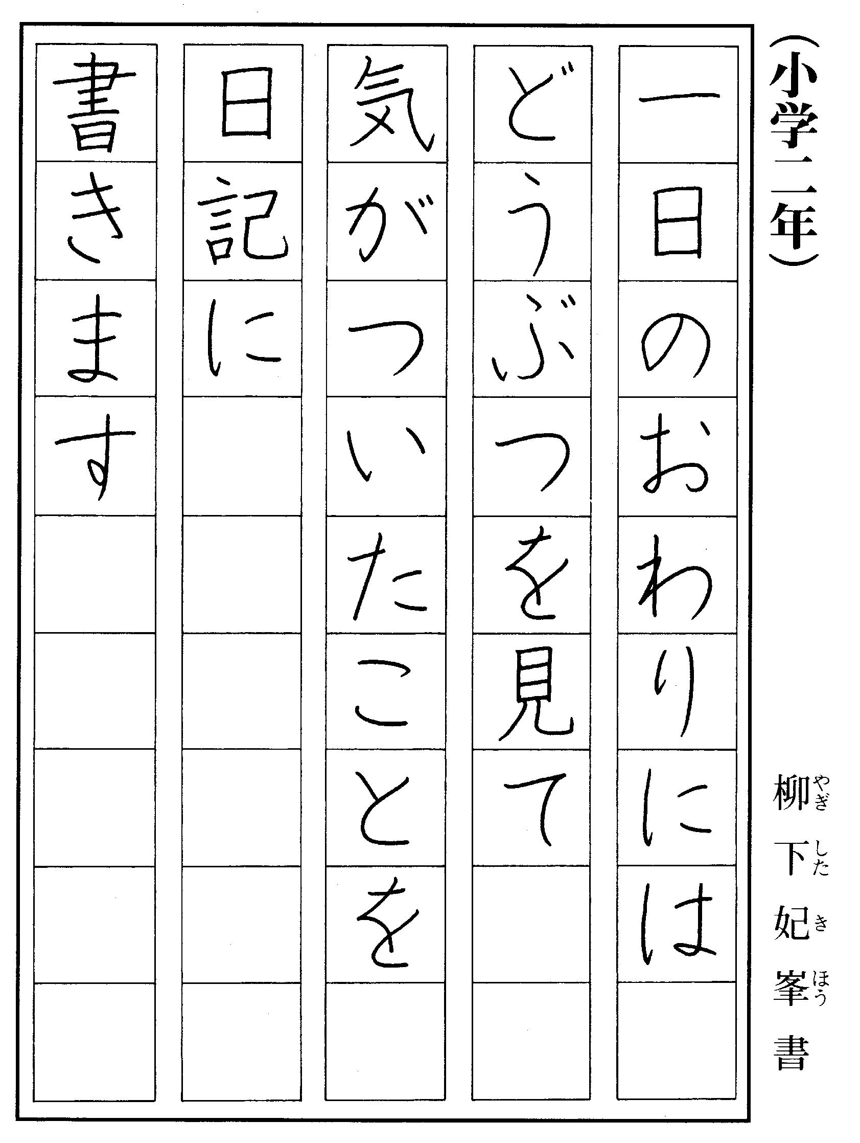 今月は、筆ペン講座・鑑賞作品・小学2年のご紹介です。