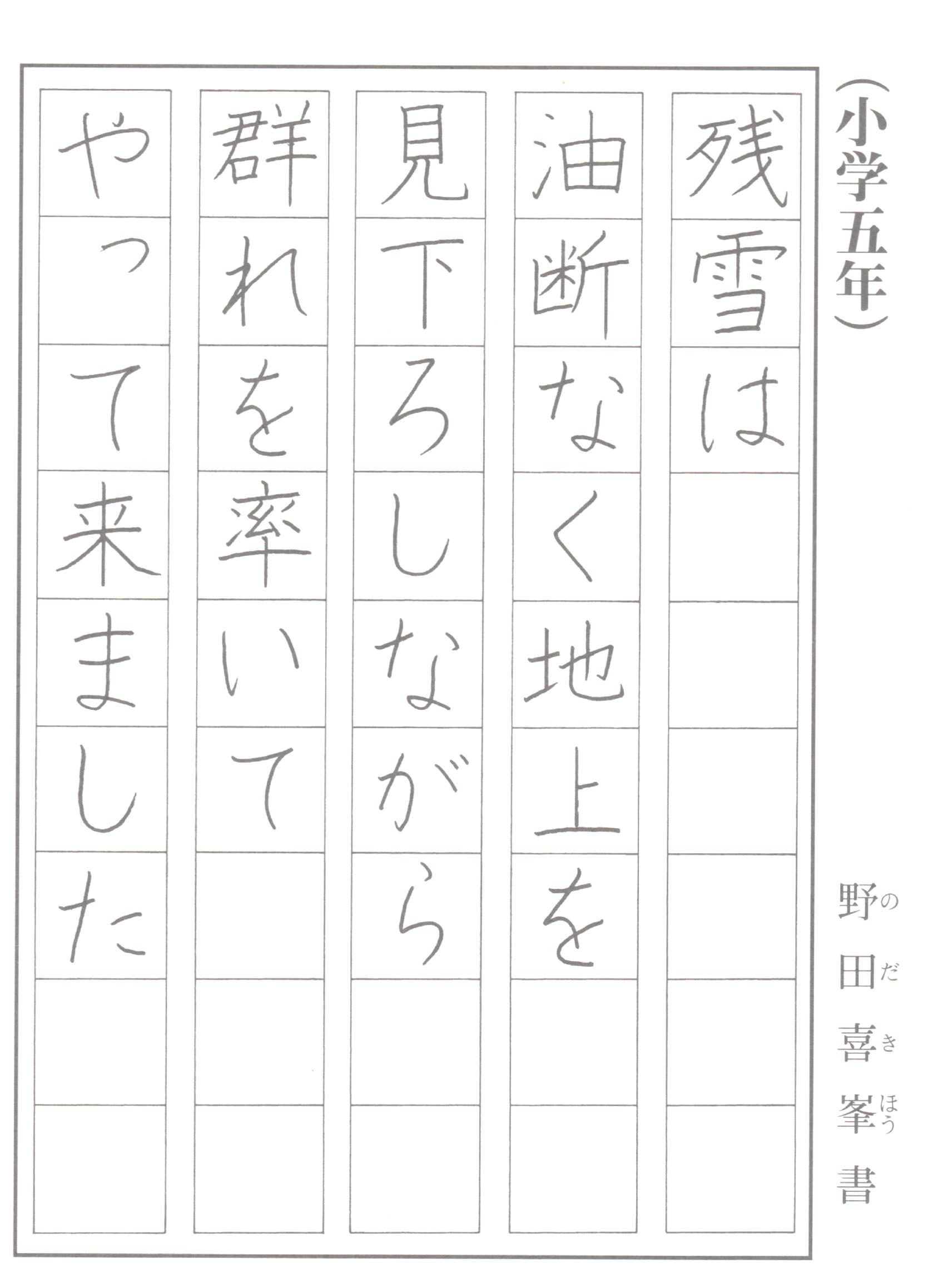 今月は筆ペン講座・鑑賞作品・小学5年のご紹介です。