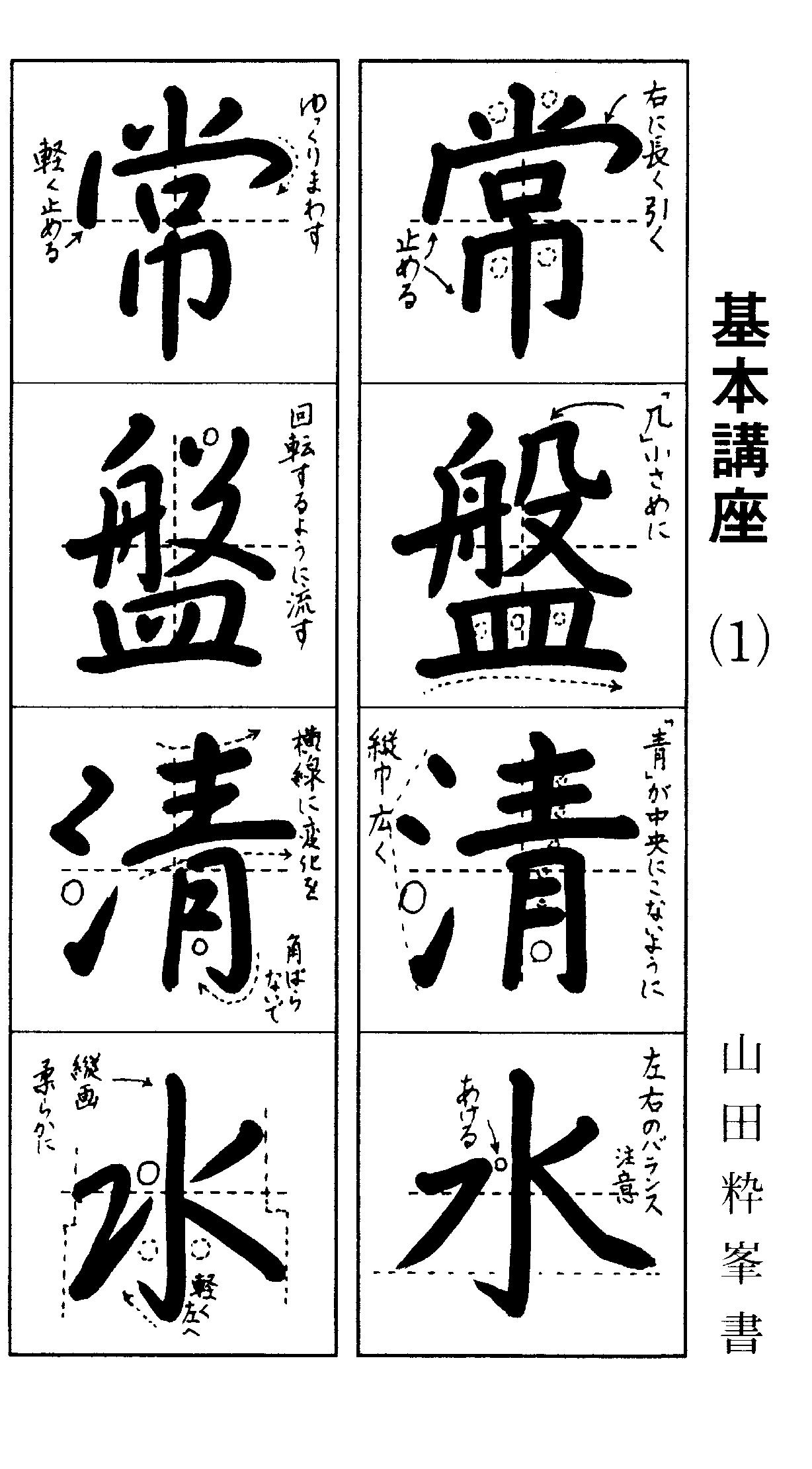 楷書は文字の中心、線の間隔に気を付けて下さい。