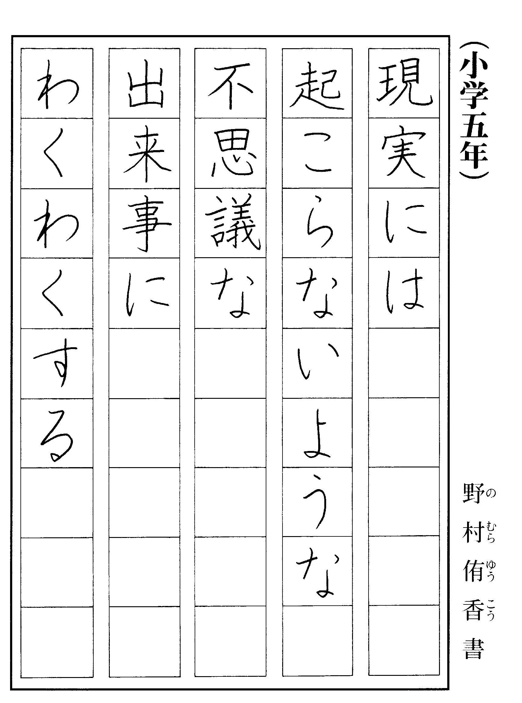 今月は基本講座(1)・横書き講座・小学5年のご紹介です。