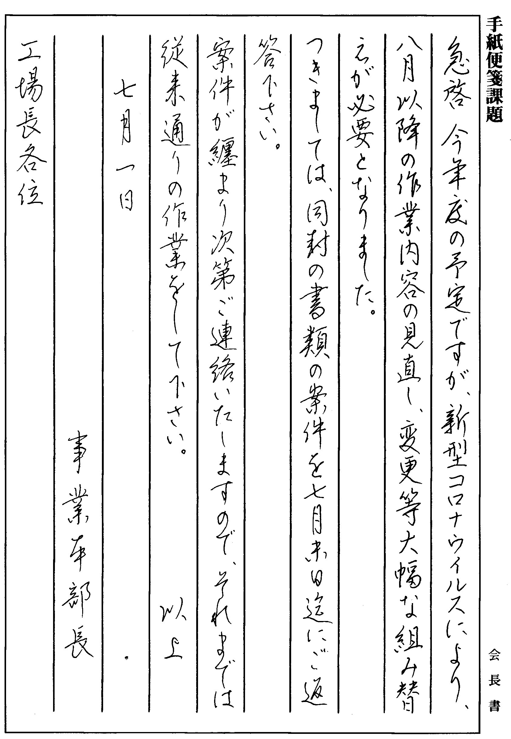 <便箋課題>