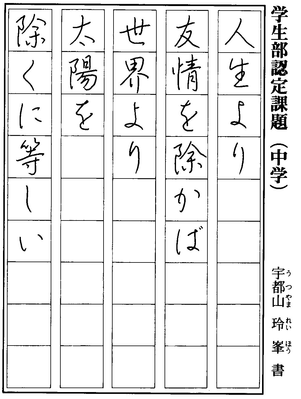 四文字、五文字の[間]に注意して揃えるようにしましょう。行書の同じ文字の書き換えにも気を付けて下さい。