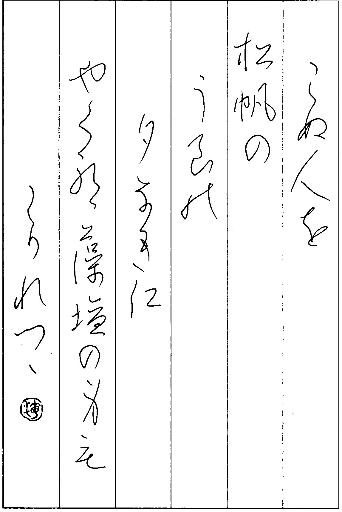 「人・夕・身」等 草書で画数の少ない文字のバランスに留意して下さい。