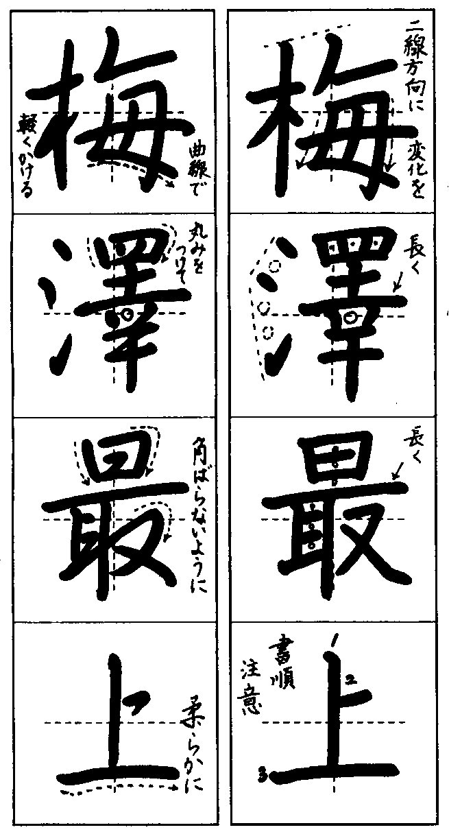 「梅」の旁 三画目の角度、長さに注意しましょう。