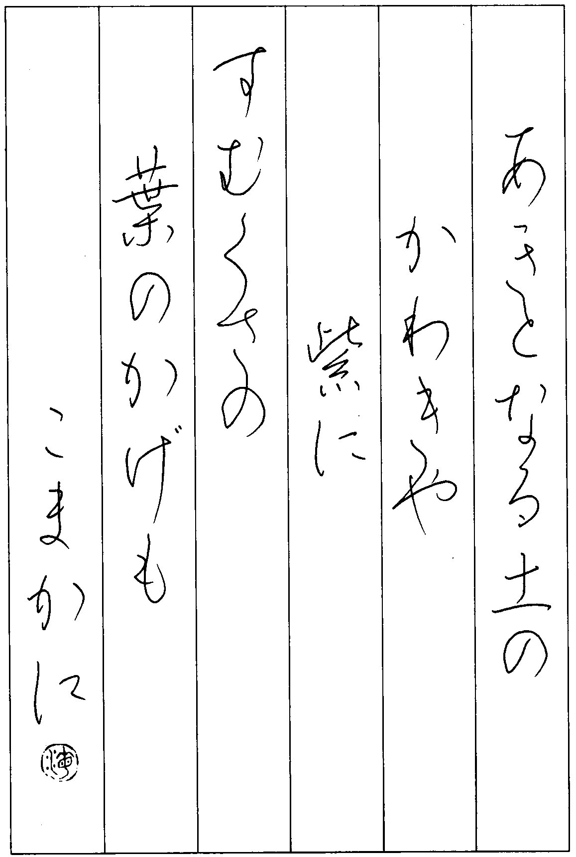 漢字の数は少ないですがそれぞれの特徴をつかんで書きましょう。「の・か」が3回づつ使われています。変化に気を配ると良いでしょう。