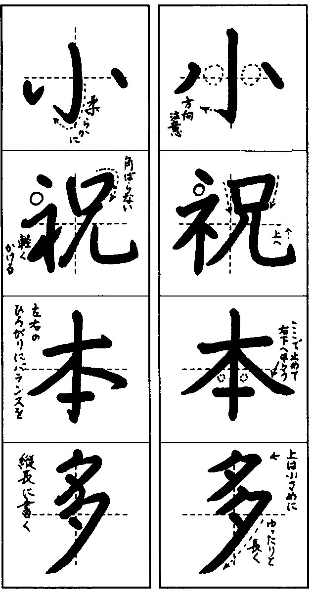 「小・本」は左右の広がりに注意しましょう。
