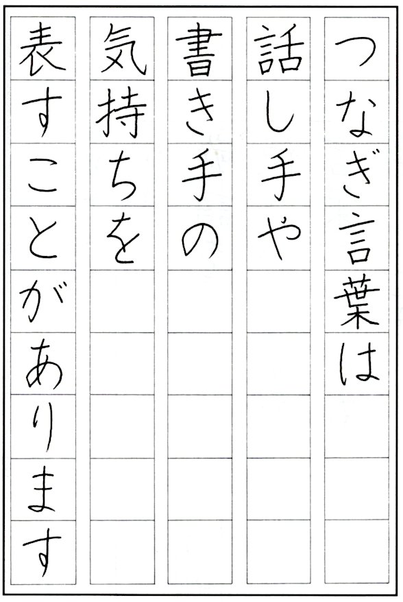 今月も「言・葉・手・話・書・気・持・表」と横画の多いものが多いので間隔に注意が必要です。