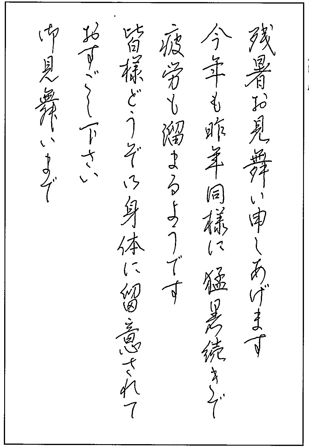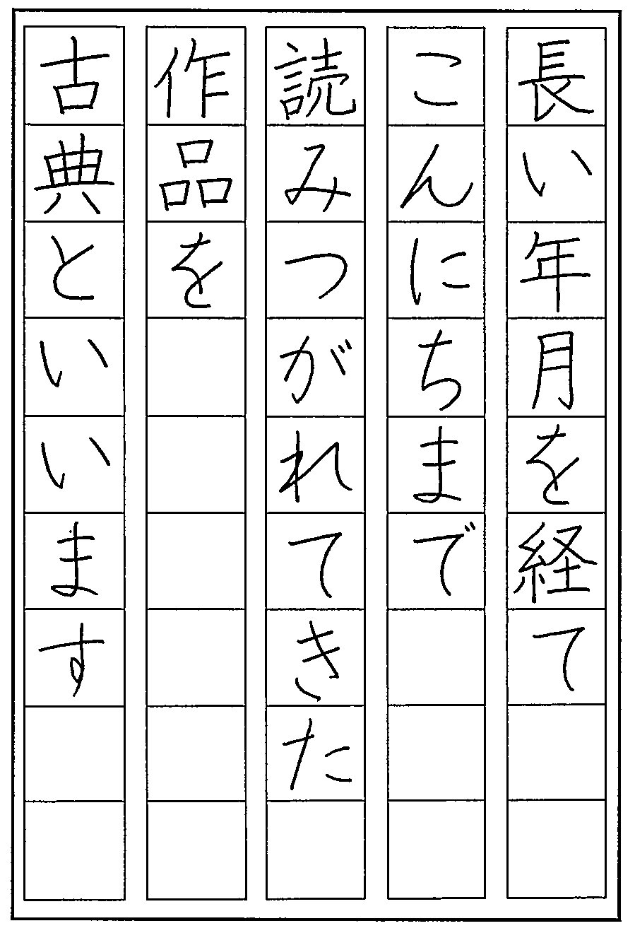 はがき課題は文字の縦中心を通す