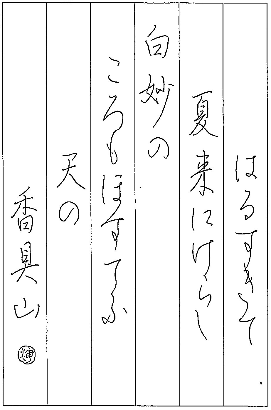 行の中心に「夏 白 妙 天 山」